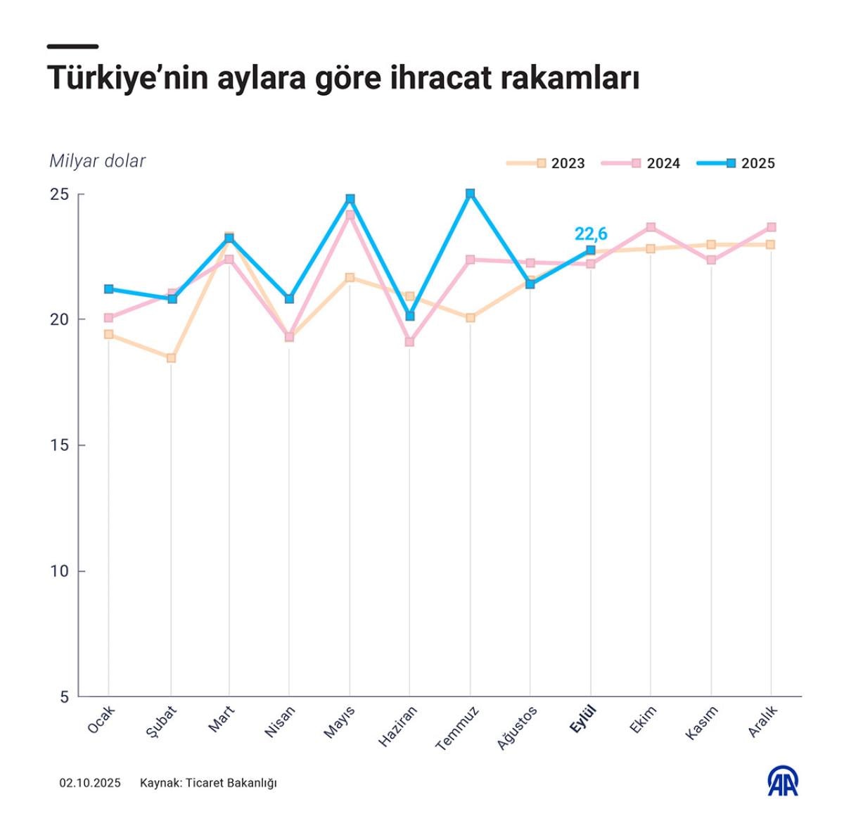 - İhracat, geçen yılın aynı ayına göre yüzde 3 artarak 22,6 milyar dolara ulaştı.