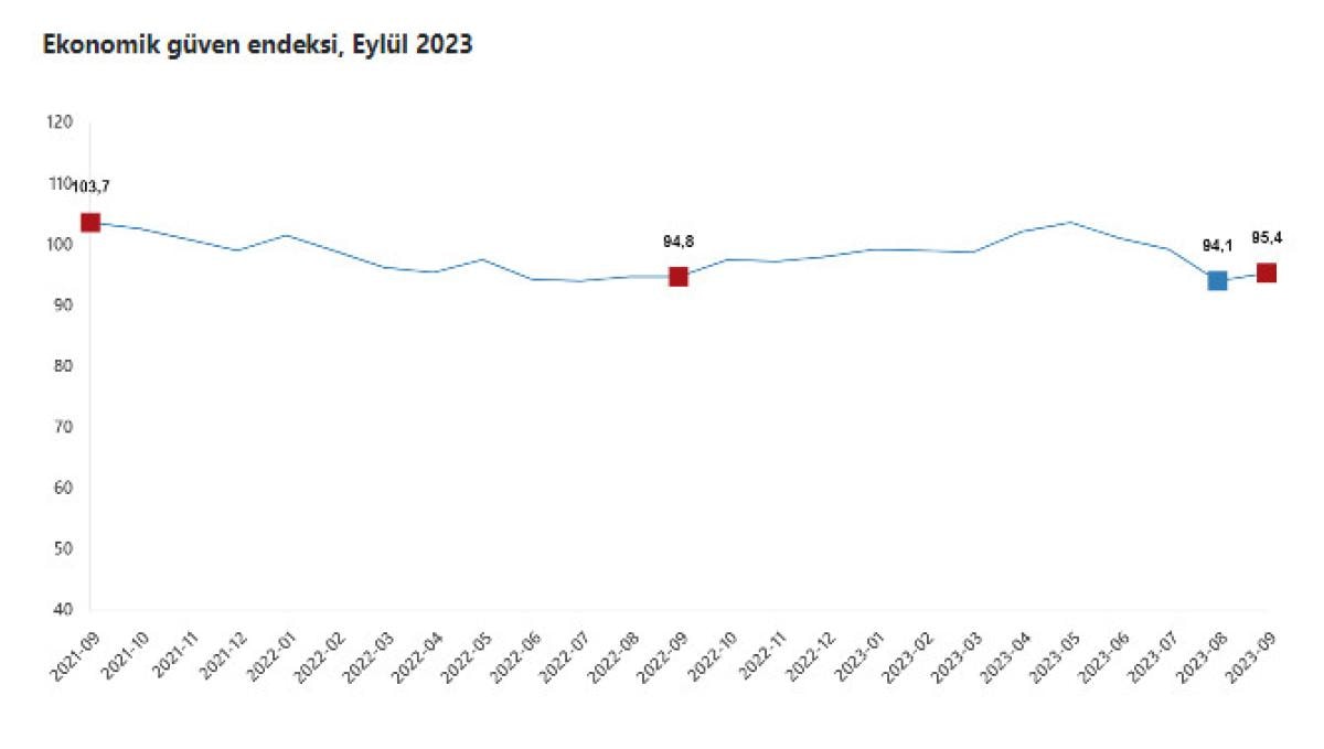 Ekonomik güven endeksi ağustos ayında 94,1 iken, eylül ayında 95,4 değerini aldı.