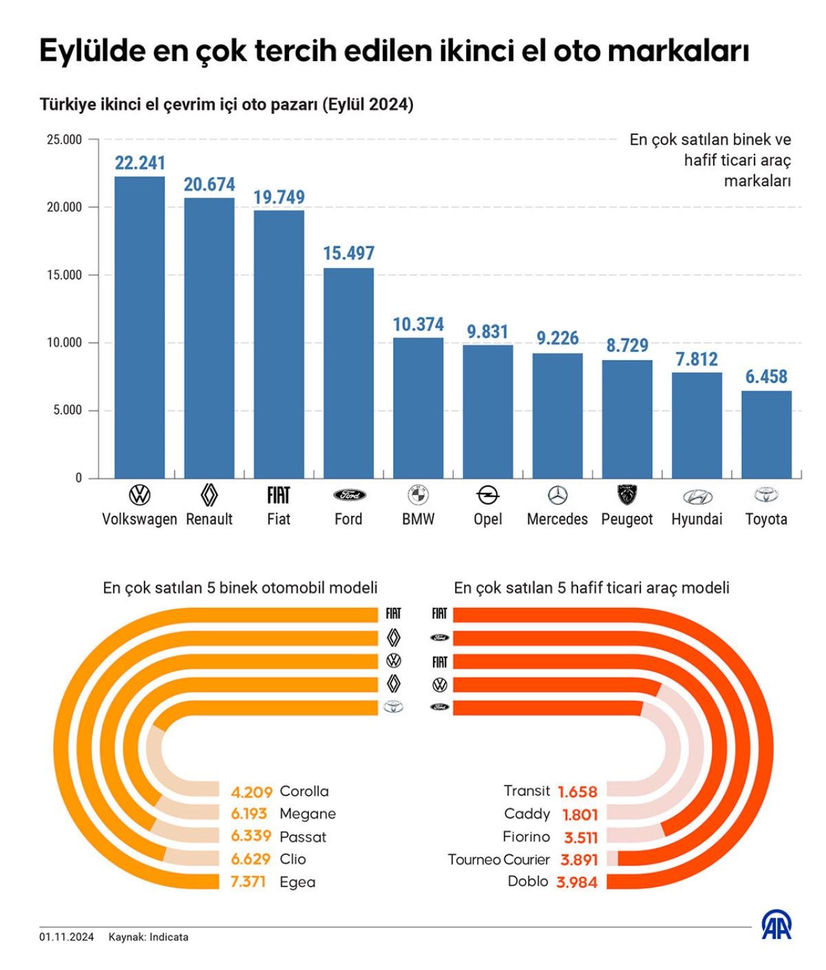 Türkiye'nin ikinci el çevrim içi araç pazarında eylülde Volkswagen, en çok tercih edilen marka olmayı sürdürdü.