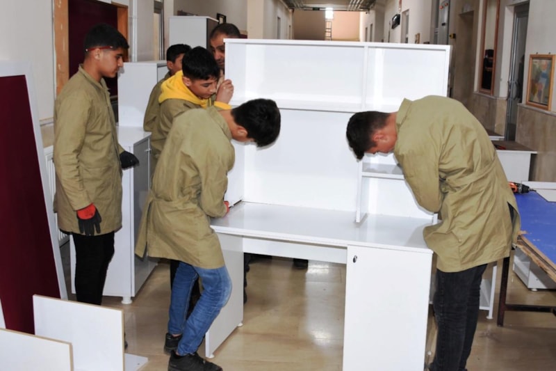 Türkiye'nin genelinde atölyelerde çalışarak üretim yapan okullardan birisi olan Bitlis Mesleki ve Teknik Anadolu Lisesi Ahşap Mobilya ve Demir Doğrama Bölümü, bir fabrika gibi çalışıyor.