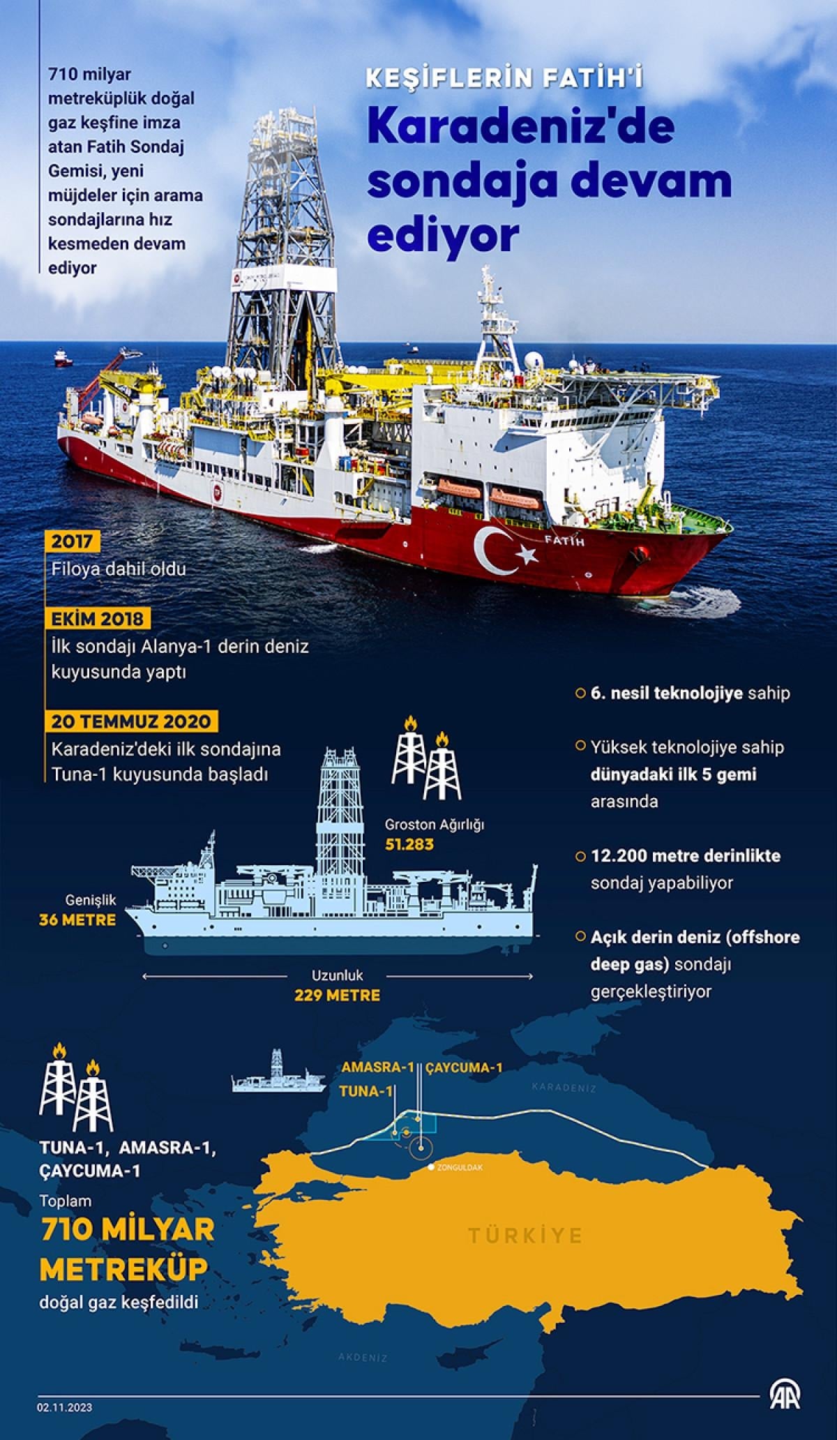 Fatih Sondaj Gemisi, yeni müjdeler için arama faaliyetlerine hız kesmeden devam ediyor.