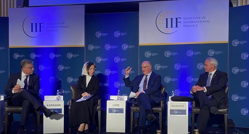 Hatice Karahan, Uluslararası Finans Enstitüsü (IIF) tarafından Washington’da düzenlenen Küresel Görünüm Forumu'nda, "Değişen Küresel Likidite Koşulları Karşısında Merkez Bankacılarının İkilemleri" başlıklı oturumda konuştu.