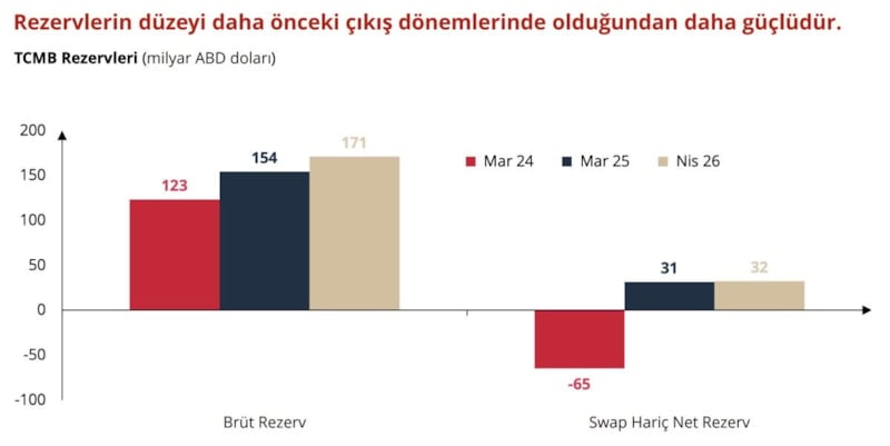 Altın fiyatlarındaki gerilemenin hanehalkı döviz talebinde etkili olduğunu kaydeden Karahan, rezervlerin düzeyinin daha önceki çıkış dönemlerinde olduğundan daha güçlü olduğunu bildirdi.