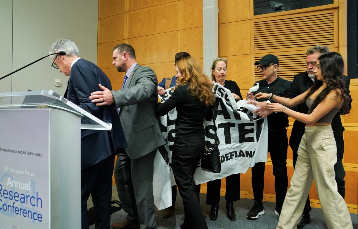 Öte yandan Powell'ın konuşması, aniden sahneye çıkan iklim aktivistleri tarafından bölündü. Kol kola duran göstericiler, "İklim sistemik bir risk", "Fosil finansmanına son" ve "Powell işini yap" sloganları attı.