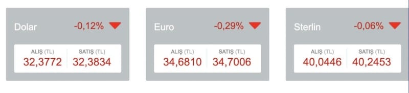 Şu anda yurt içinde döviz fiyatları düşüş trendine girerek tabelalar kırmızıya döndü.