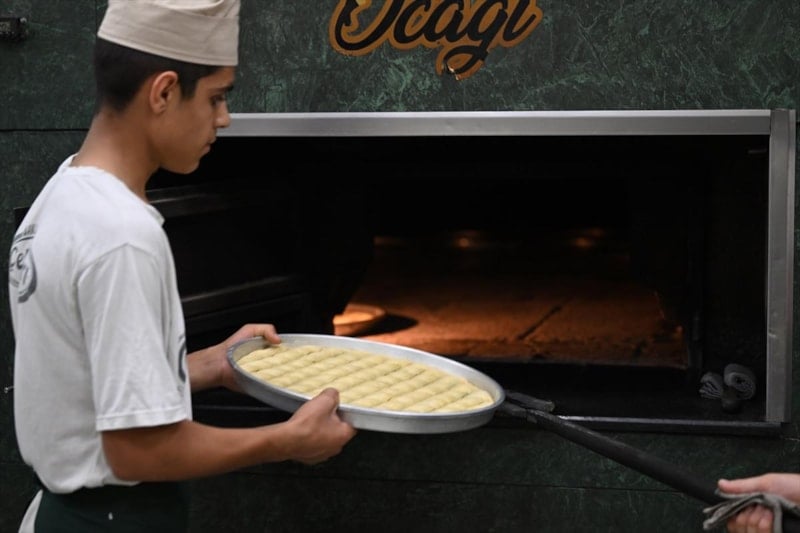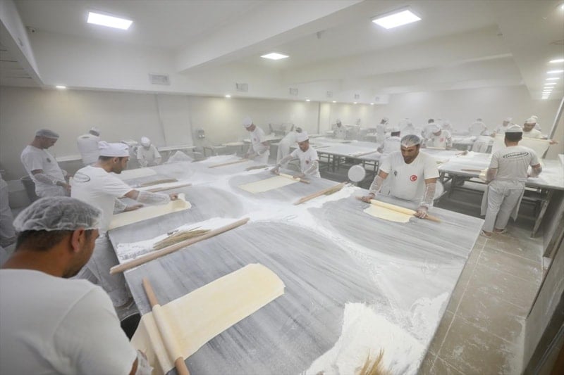 Gaziantepli baklavacılar, Kurban Bayramı öncesinde katlanan siparişleri yetiştirmek için yoğun mesaiye başladı.