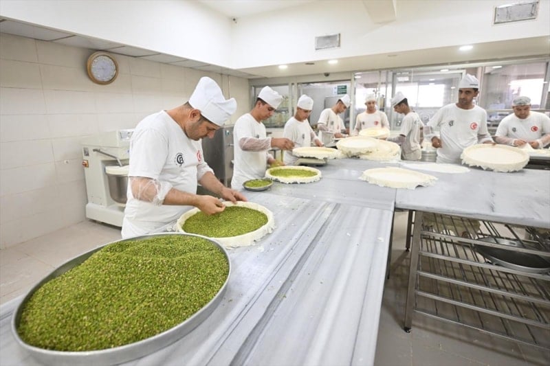 Gaziantep'te günlük üretim normal zamanlarda 30 tonken, bayram yoğunluğunun başlamasıyla iki katına yani 60 tona çıkıyor.