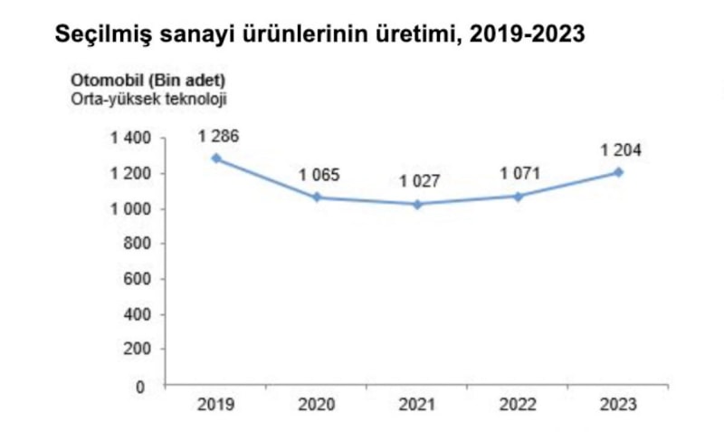 TÜİK, Sanayi Ürün İstatistiklerine göre geçen yıl Türkiye'de 1 milyon 203 bin 933 adet otomobil üretildiğini duyurdu.