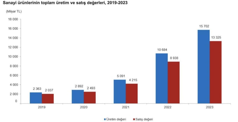 Üretimden yapılan satışlar 13 trilyon 325 milyar 110 milyon TL oldu