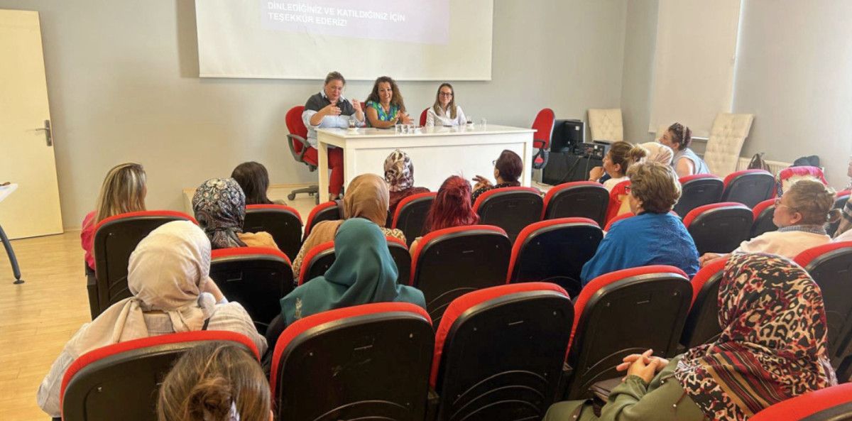 Eğitimlere katılan kadınlarla Girişimcilik, Marka Tasarımı, Sürdürülebilir Ürün Tasarımı, Kooperatif Kurulumu ve Süreçleri ile Kooperatiflerde Hukuki Süreçler ve Sorumluluklar konularında detaylı bilgi paylaşıldı.
