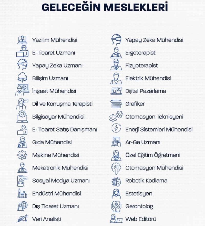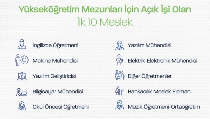 İş gücü ihtiyacının en fazla olduğu alan imalat sektörü. İşverenlerden alınan geri bildirimlere göre gelecek 10 yılda ön plana çıkması beklenen meslekler ise yazılım mühendisi, e-ticaret uzmanı, yapay zeka uzmanı, bilişim uzmanı, inşaat mühendisi, pazarlama uzmanı, dil ve konuşma terapisti ve CNC operatörü.