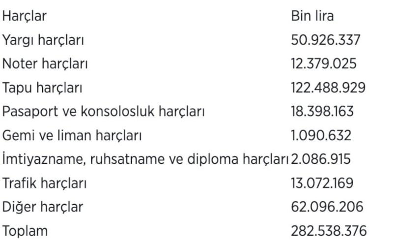 2025 bütçesine göre toplanacak harçlar ve tutarları şöyle: