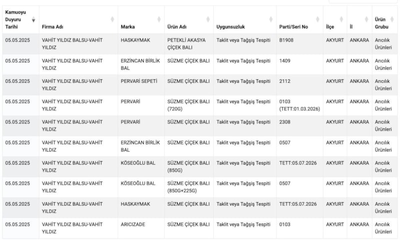 Tarım ve Orman Bakanlığı, Türkiye genelinde yaptığı denetimler sonucunda tespit ettiği uygunsuzlukları üç liste halende yayımlamaya devam ediyor.