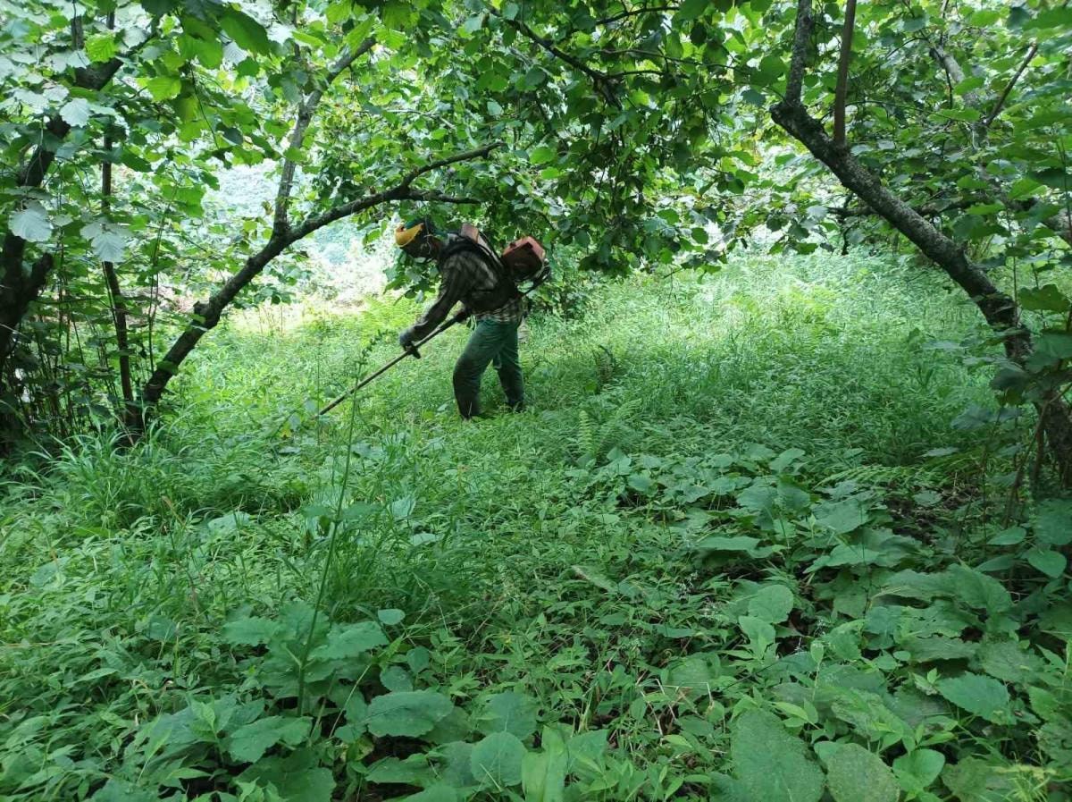 Giresun’da fındık hasadına günler kala üreticiler hasat öncesi bahçe altı temizlik çalışmalarına başladı.