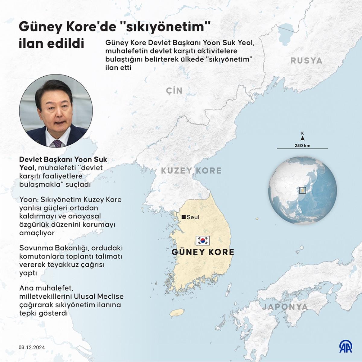 Güney Kore Devlet Başkanı Yoon, muhalefetin devlet karşıtı aktivitelere bulaştığını belirterek, ülkede "sıkıyönetim" ilan etmişti.