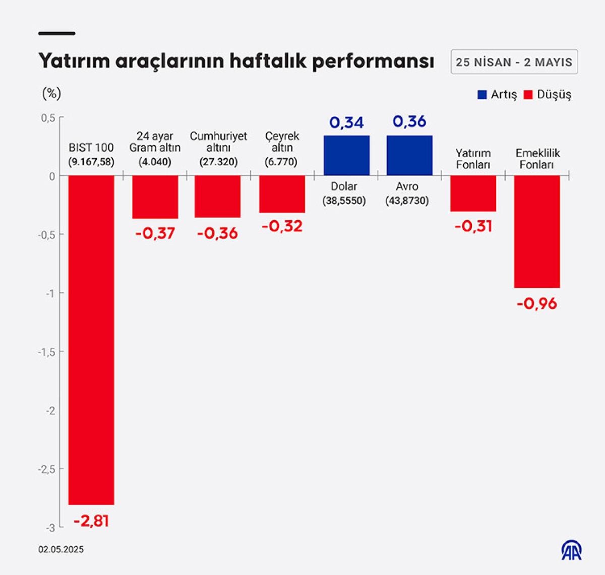 25 Nisan-2 Mayıs arasında yatırım araçlarının haftalık performansı açıklandı.