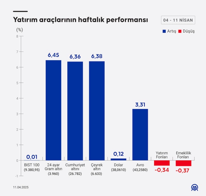 Bu hafta yatırım araçlarının performansı açıklandı. Altın, euro ve dolar yatırımcısına kazandırırken, yatırım ve emeklilik fonları ile kaybettirdi.