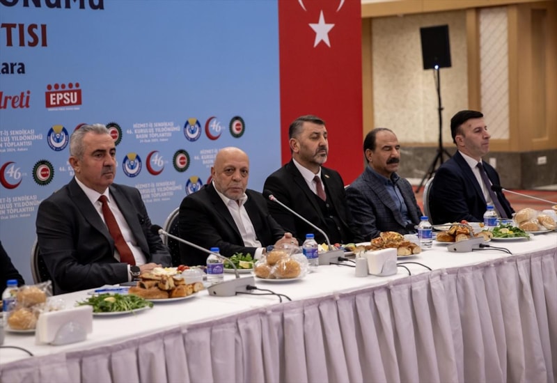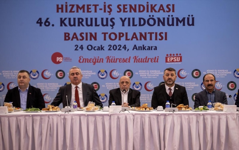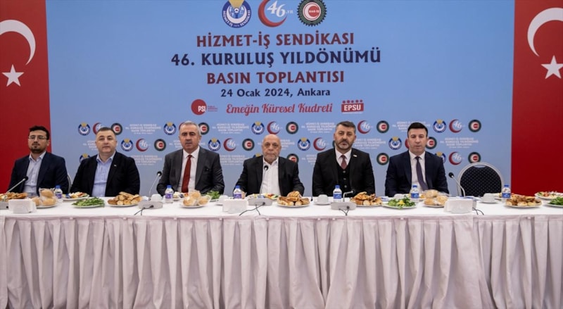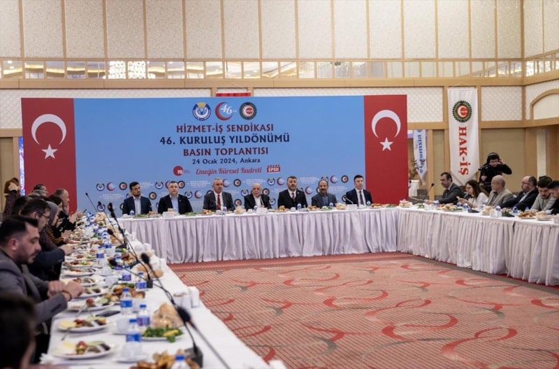 HAK-İŞ Konfederasyonu ve Hizmet-İş Sendikası Genel Başkanı Mahmut Arslan, Hizmet-İş Sendikası'nın 46'ncı kuruluş yıl dönümünü dolayısıyla bir basın toplantısı düzenledi.