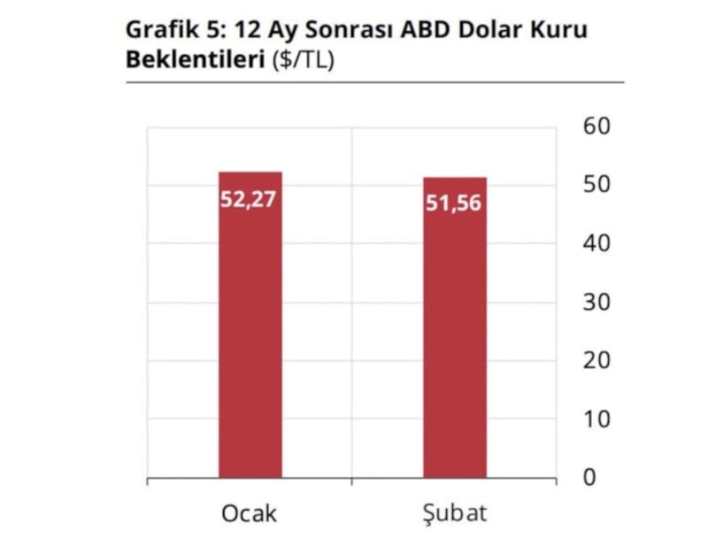 Merkez Bankası'nın ilk kez açıkladığı Hanehalkı Beklenti Anketi'nin sonuçlarına göre; vatandaşın 12 ay sonrası için Dolar/TL beklentisi ise, bir önceki aya göre 0,71 TL azalarak 51,56 TL'ye geriledi.