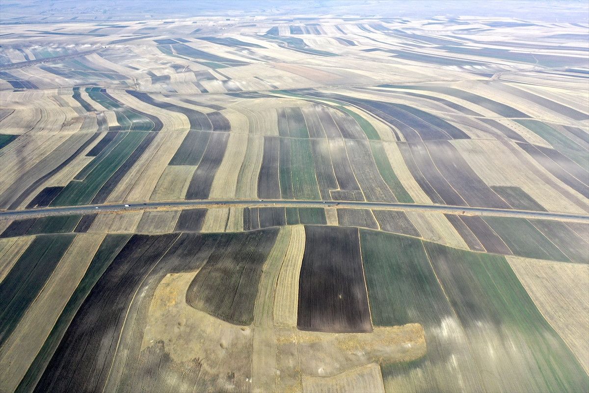 - Kars'ta 275 bin hektar alanda yapılan tarımsal üretim sonrası, tarlalar halı deseni görünümü kazandı.