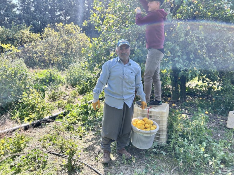 Şu anda bu limonları makasla zor kesiyoruz, elimizi atıyoruz elimizle birlikte geliyor soğuktan dolayı çok zarar gördü ürünler. Adana'daki, Arsuz ve Erzin'deki çiftçiler şu anda perişan don vurdu gitti. Hatay Arsuz'da limon şu anda iyi buraya fazla don vurmadığı ve çiftçilerin de önlemini almış olmalarından dolayı buradaki limonların durumu çok iyi. Üreticiler de Hatay'a gelip limon alıyorlar. Biz yevmiye olarak 1.000 TL kazanıyoruz.