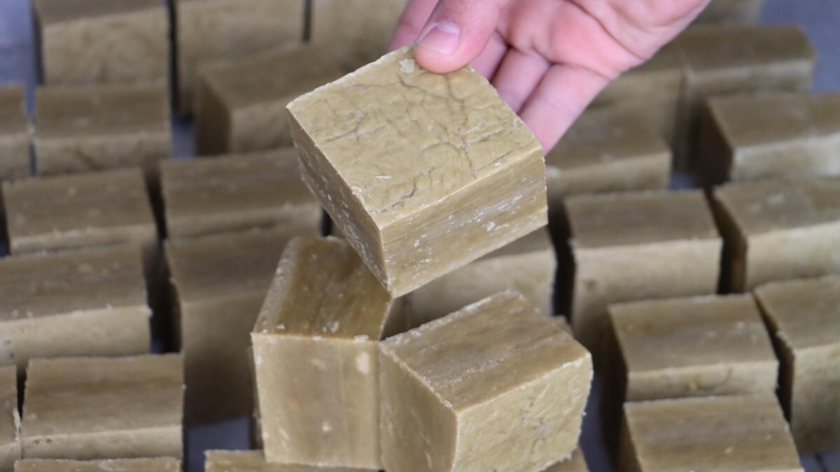 Evlerinin bir bölümünü sabun üretimi için ayıran ve günlük 500 kilo sabun üreten Kaya ailesi, vücudu virüslerden arındıran sabunun kilosunu 100 liraya satıyor.