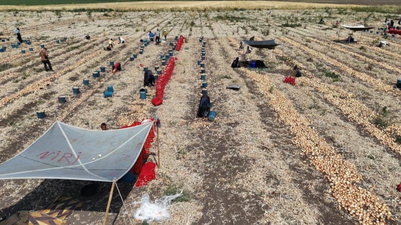 Çuvallara yerleştirip dikişini yaparız. Sıcak altında çalışmak bayağı bizi zorluyor. 1 haftadır havalar çok sıcaktı. Soğanda verim ve kalite güzel. Geçen yıla göre verim daha güzel oldu.” ifadelerini kullandı.