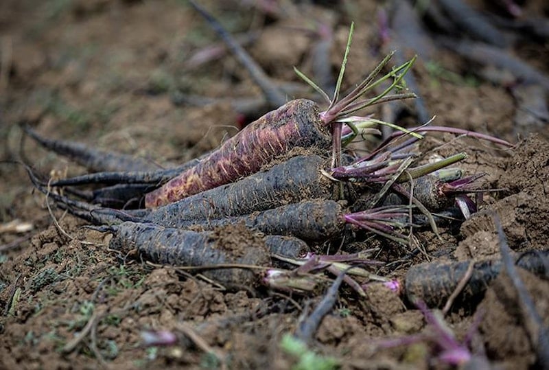 Kahramanmaraş merkezli depremlerin büyük yıkıma neden olduğu Hatay'da, Amik Ovası'nda hasadı süren coğrafi işaret tescilli Kırıkhan siyah havucunda 60 bin ton rekolte bekleniyor.