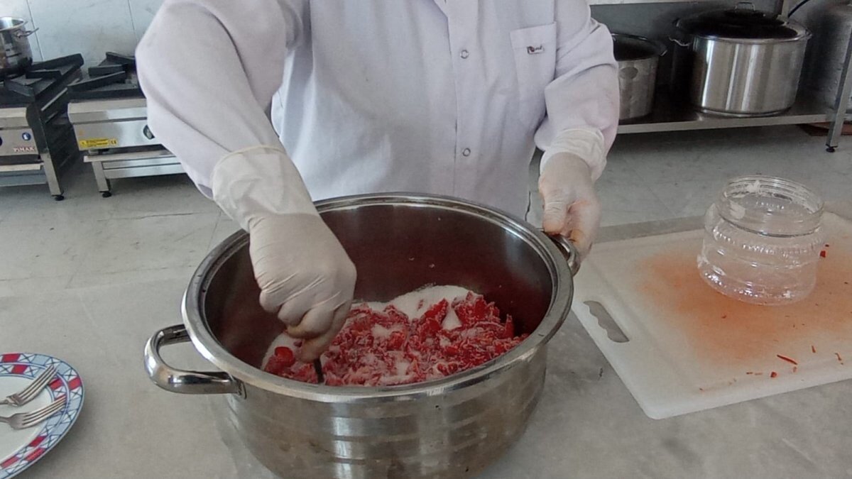 Reçeli hem acı hem de tatlı biberden yaptıklarını söyleyen Dağ, "Biberlerimizi yıkayıp ince ince doğradıktan sonra şekerle beraber tencereye koyuyoruz. İki saat bir süre bekledikten sonra, suyunu bırakıyor. Onu suyu ile beraber kaynatıyoruz, kıvamını aldıktan sonra hazır hale geliyor. Piştikten sonra onu kavanozlara doldurup, havasını alıp satışa hazır hale getiriyoruz. Bu reçelin özelliği acı biber ile yapılmasıdır.” dedi.