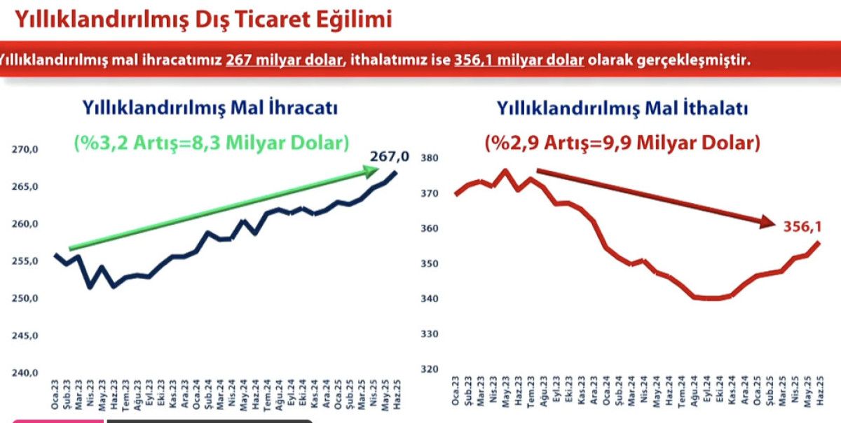 Haziran ayı itibariyle yıllık ihracatımızı yüzde 3,2 artırarak 267 milyar dolarla Cumhuriyet tarihi rekoru kırdık."