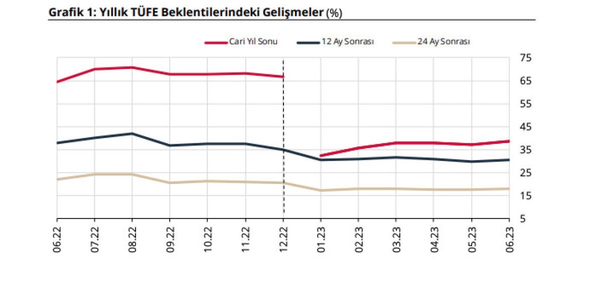 12 ay sonrası TÜFE beklentisi bir önceki anket döneminde yüzde 29,84 iken, bu anket döneminde yüzde 30,65 olmuştur. 24 ay sonrası TÜFE beklentisi ise aynı anket dönemlerinde sırasıyla yüzde 17,74 ve yüzde 18,12 olarak gerçekleşti.