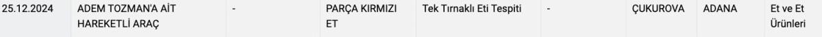 "Sağlığı Tehlikeye Düşürecek Gıdalar" listesine Adana Çukurova'da, hareketli araçta parça kırmızı ette tek tırnaklı eti tespit edildi.