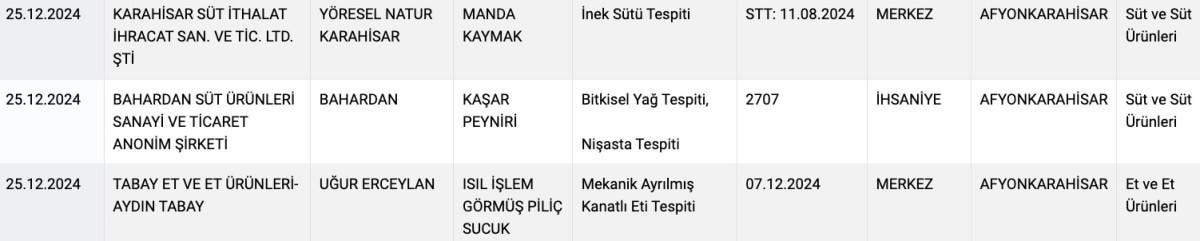 Bakanlığın "Taklit veya Tağşiş Yapılan Gıdalar" listesine ise 13 yeni firma katılınca, buradaki rakam da 849'a çıktı.