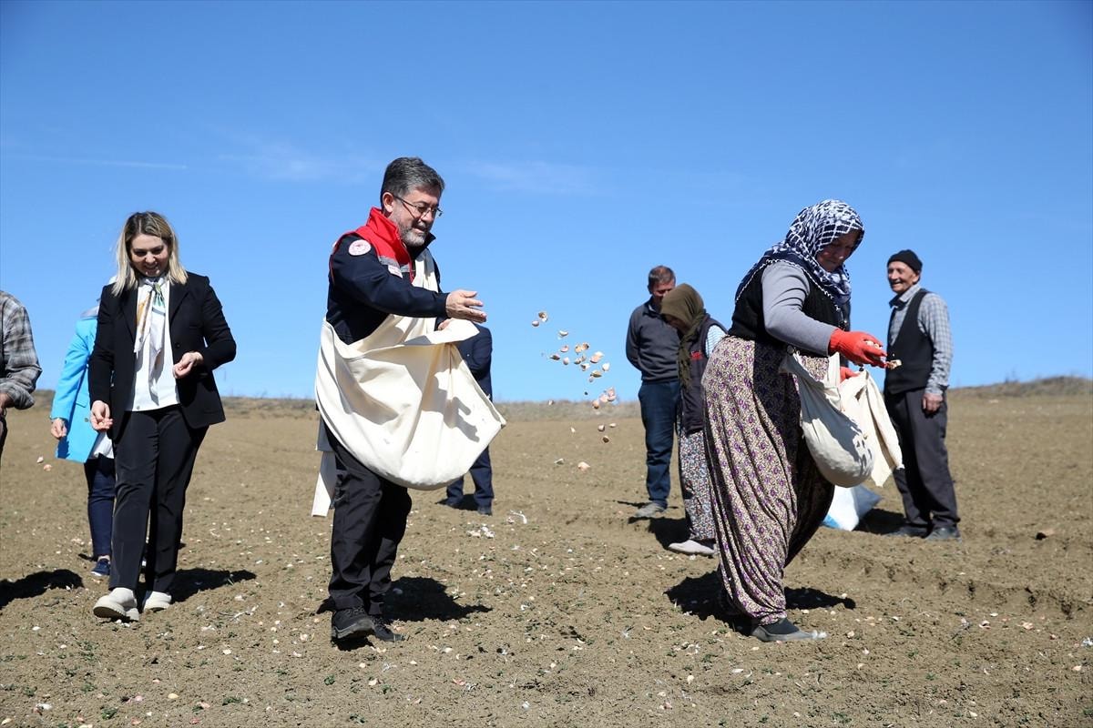 Tarım ve Orman Bakanı İbrahim Yumaklı, programa katılarak hem çalışmalara destek verdi hem de tarlada bulunan kadınların 8 Mart Kadınlar Günü'nü kutladı.