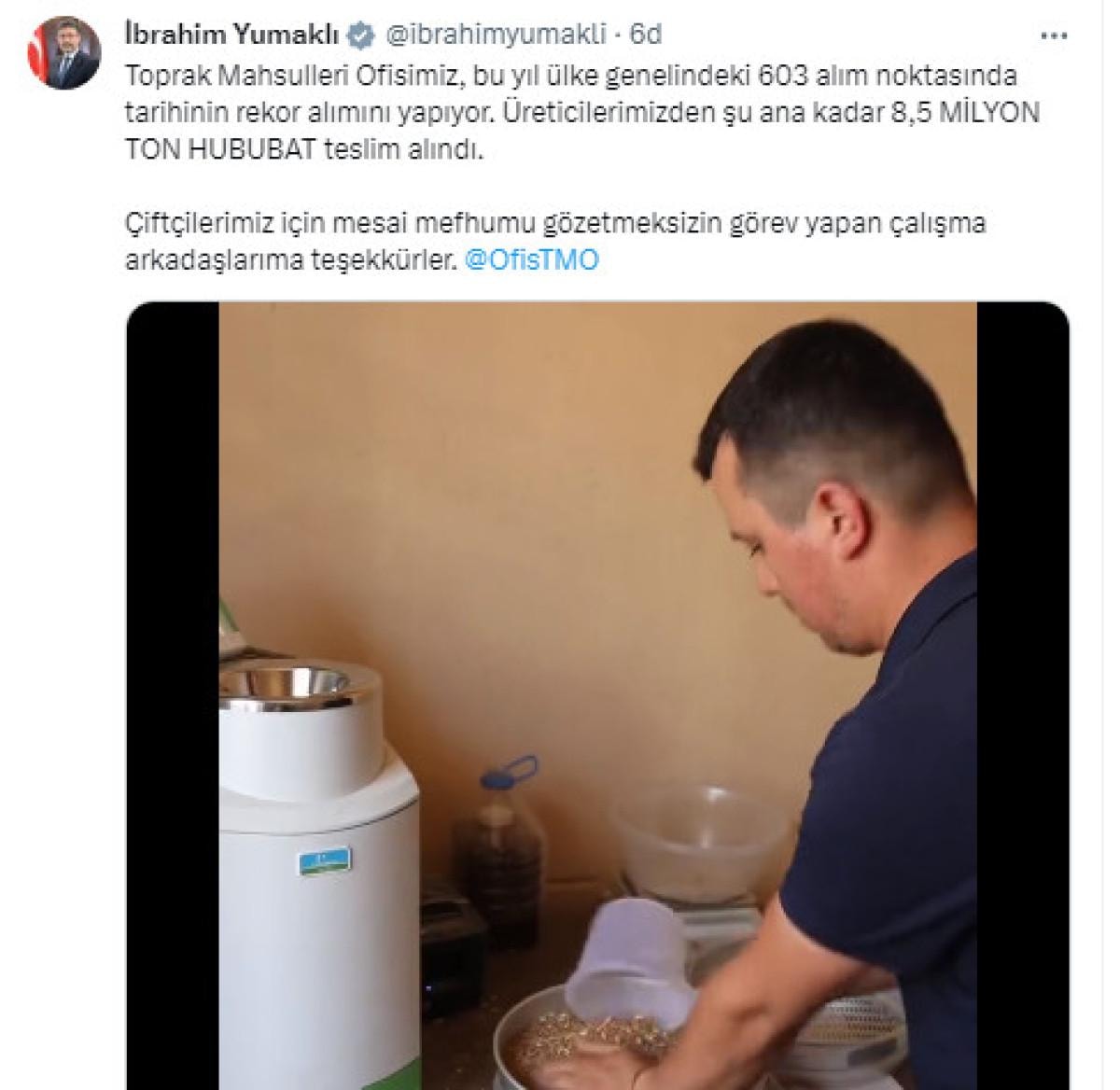 Bakan Yumaklı, paylaştığı mesajda TMO'nun tarihi rekor alım yaptığını belirterek şu ifadede bulundu:
