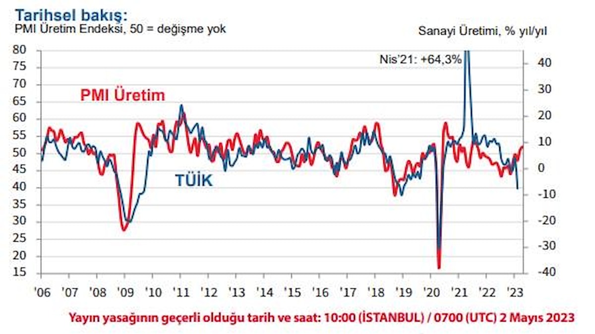 Türkiye, nisan ayı imalat sanayi Türkiye İmalat PMI (Satın Alma Yöneticileri Endeksi) açıklandı.