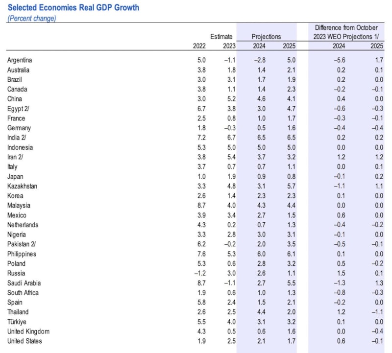 IMF, geçen yıl ekim ayında yayınlanan raporunda, dünya ekonomisinin 2024'te yüzde 2,9 ve 2025 yüzde 3,2 büyüyeceğini öngörmüştü.