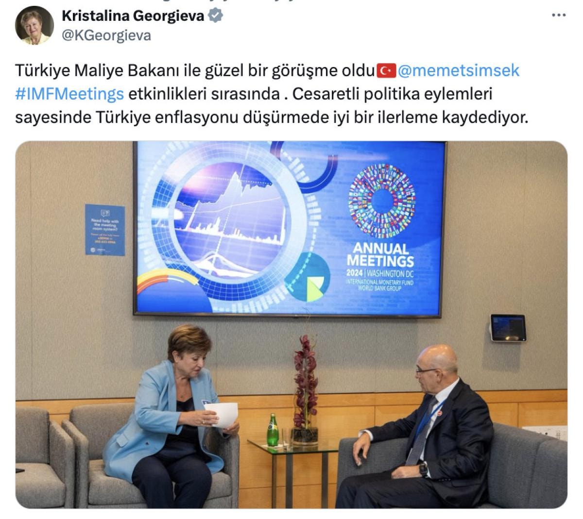 IMF Başkanı Kristalina Georgieva ise sosyal medya paylaşımında, Mehmet Şimşek'le ilgili şu ifadelere yer verdi: