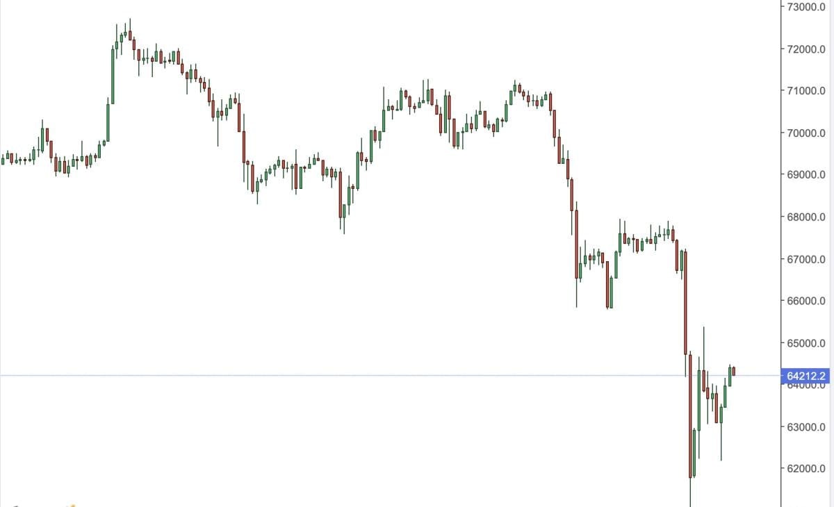 Tüm zamanların en yüksek seviyesini 14 Mart'ta 73 bin 750 dolarla kaydeden Bitcoin'in fiyatındaki bir aylık düşüş yüzde 13'ü aştı.