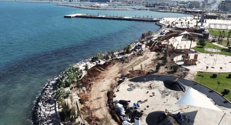 Hatay'da 6 Şubat 2023'teki depremlerde 80 santimetre çökme oluşan İskenderun sahilindeki "İskenderun Sahil Düzenleme ve Yenileme Projesi" devam ediyor.