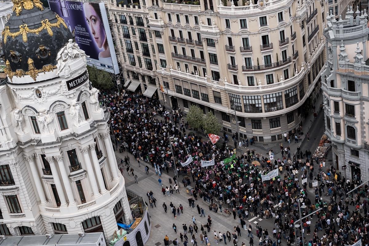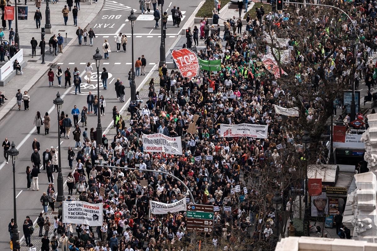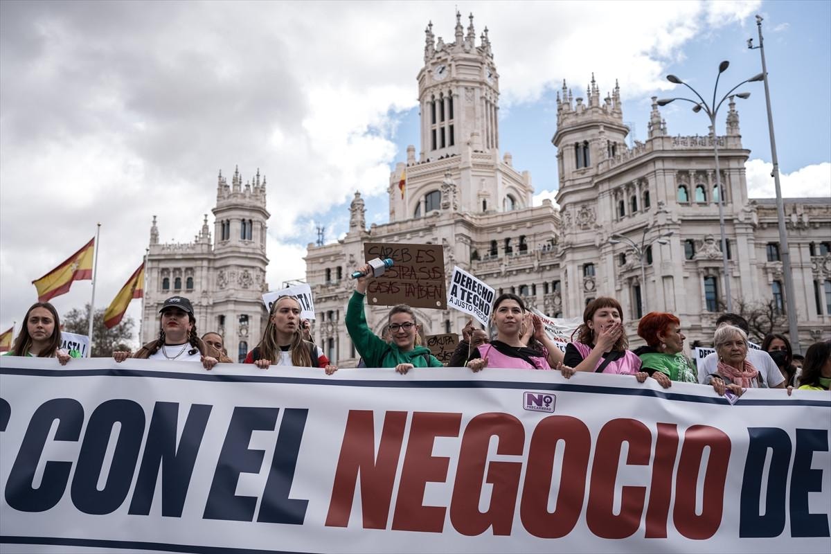 İspanya'nın Madrid ve Barselona gibi büyük şehirlerinde sokaklara dökülen binlerce İspanyol, konut krizini ve yüksek ev kiralarını protesto etti.