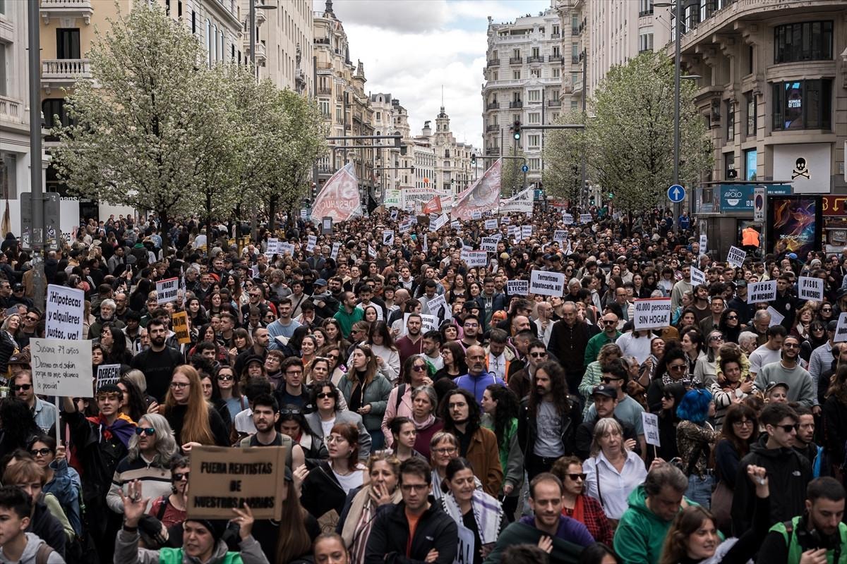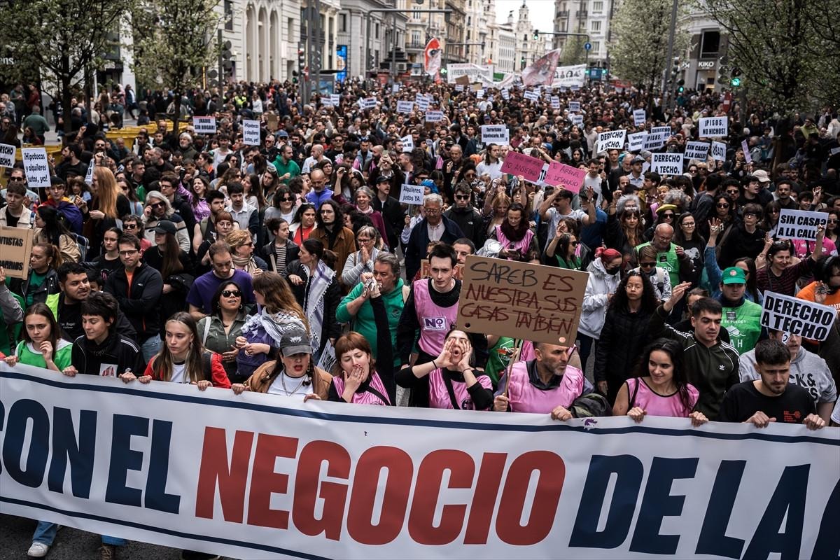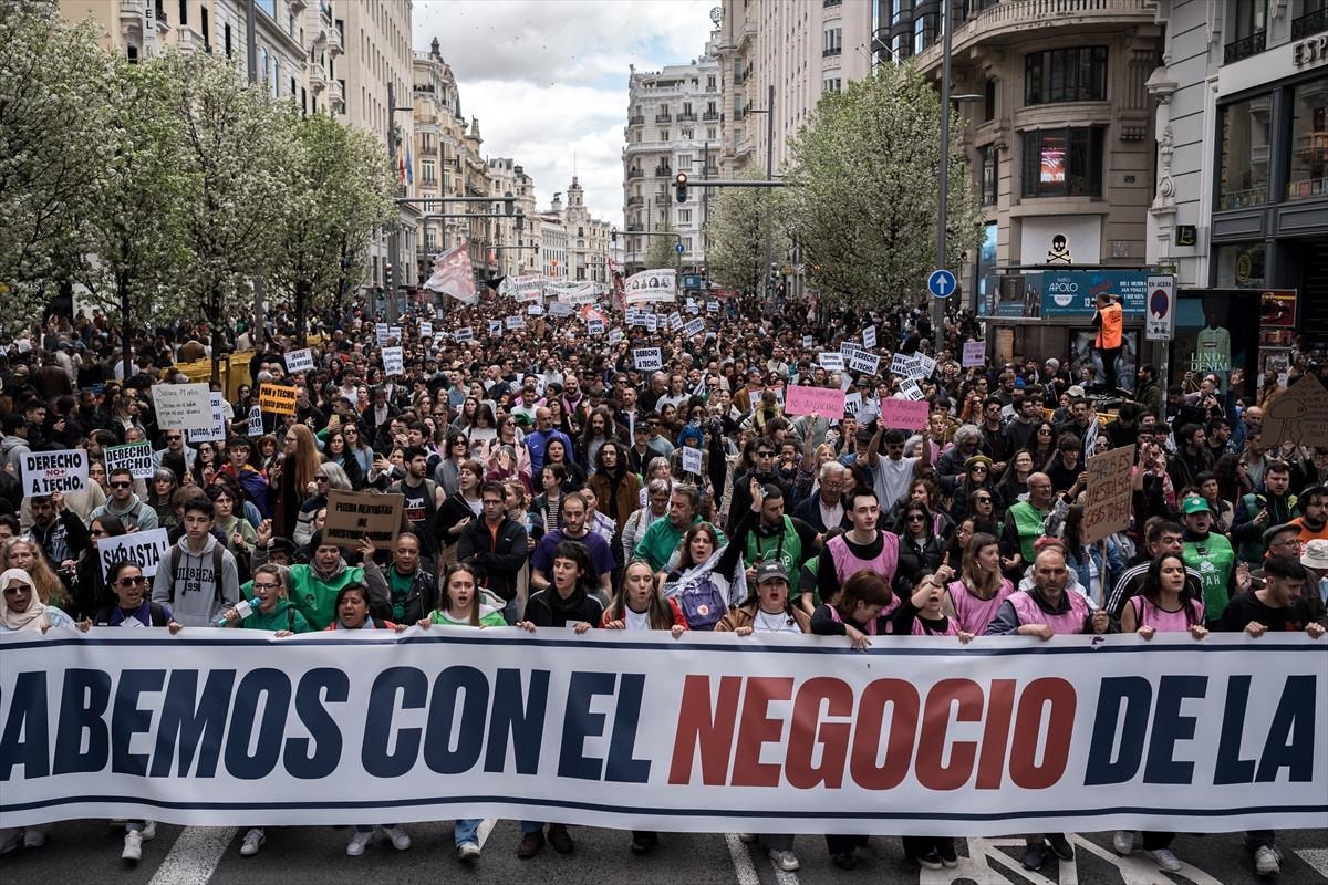 Konut krizinin en fazla yaşandığı Madrid ve Katalonya özerk bölgelerindeki kiracı derneklerinin çağrısıyla düzenlenen gösterilerde "Konut krizine son verelim", "Kiralarda yüzde 50 indirim ve rantçıların pazarlığına son" yazılı pankartlar dikkati çekti.