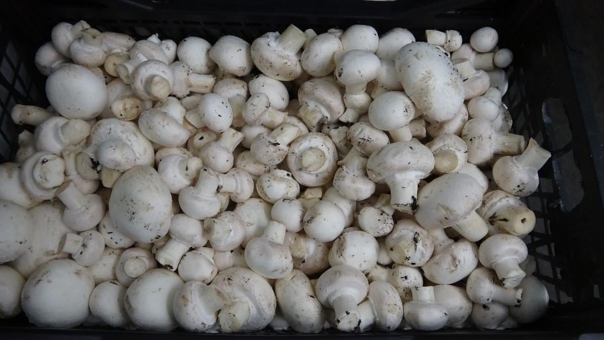 İşçiler tarafından yaklaşık olarak 9 kilogram kapasiteli kasalara toplanan mantarlar, soğuk hava deposunda bekletiliyor.