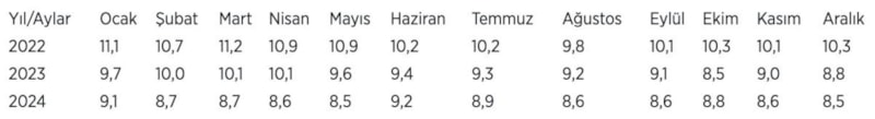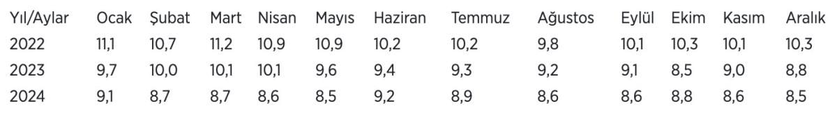 2022-2024 dönemi mevsim etkilerinden arındırılmış işsizlik oranları: