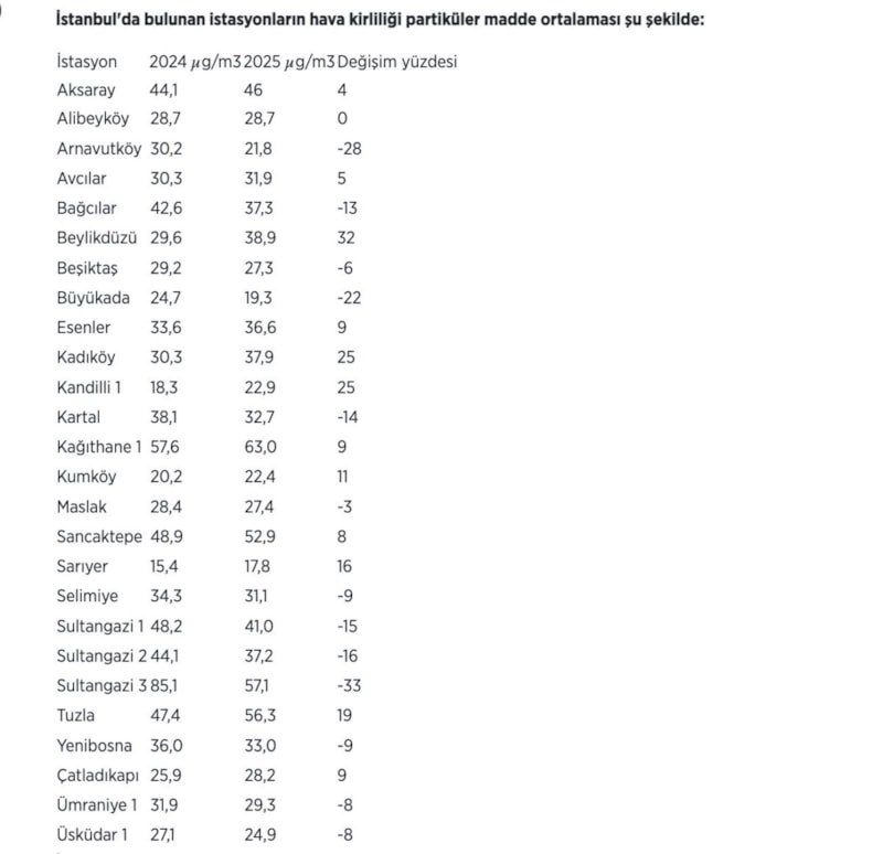 İSTANBUL'DA 2025 İLE 2024 YILLARINDAKİ HAVA KİRLİLİĞİ ORANLARI