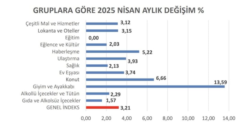 2025 Nisan ayında İstanbul Tüketici Fiyat İndeksinde; bir önceki aya göre değişik gören harcamalarda artış oranları şöyle:
