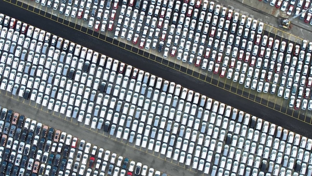Yan yana dizilen yüzlerce otomobil, limanda adeta görsel bir tablo oluşturdu.