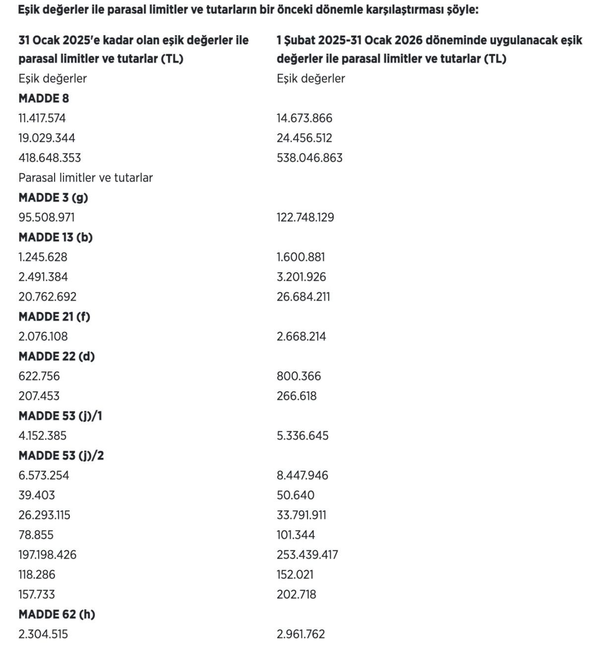 Kamu İhale Kanunu'nda (KİK) belirtilen eşik değerler ve parasal limitler güncellendi.
