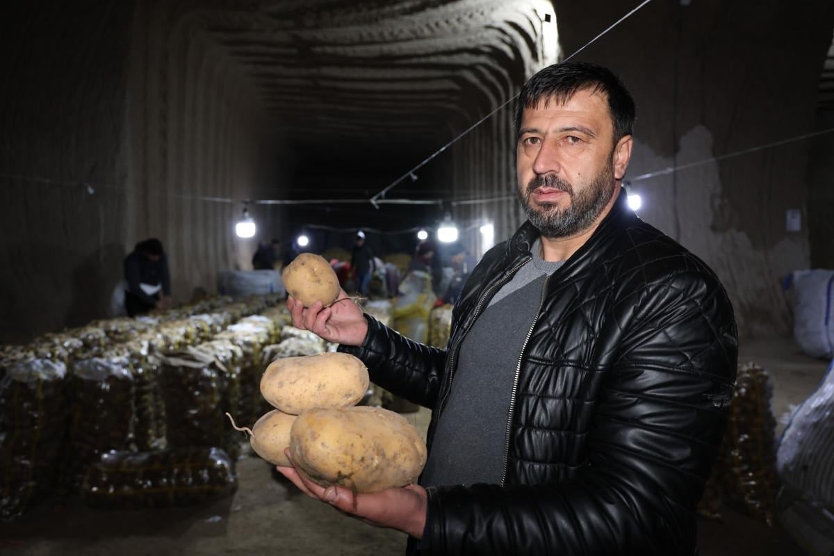 Farklı yörelerden hasat edilen yaklaşık 1 milyon 600 bin ton patates, bölgeye özgü tüf kayaların oyulması suretiyle oluşturulan doğal soğuk hava depolarında saklanıyor.