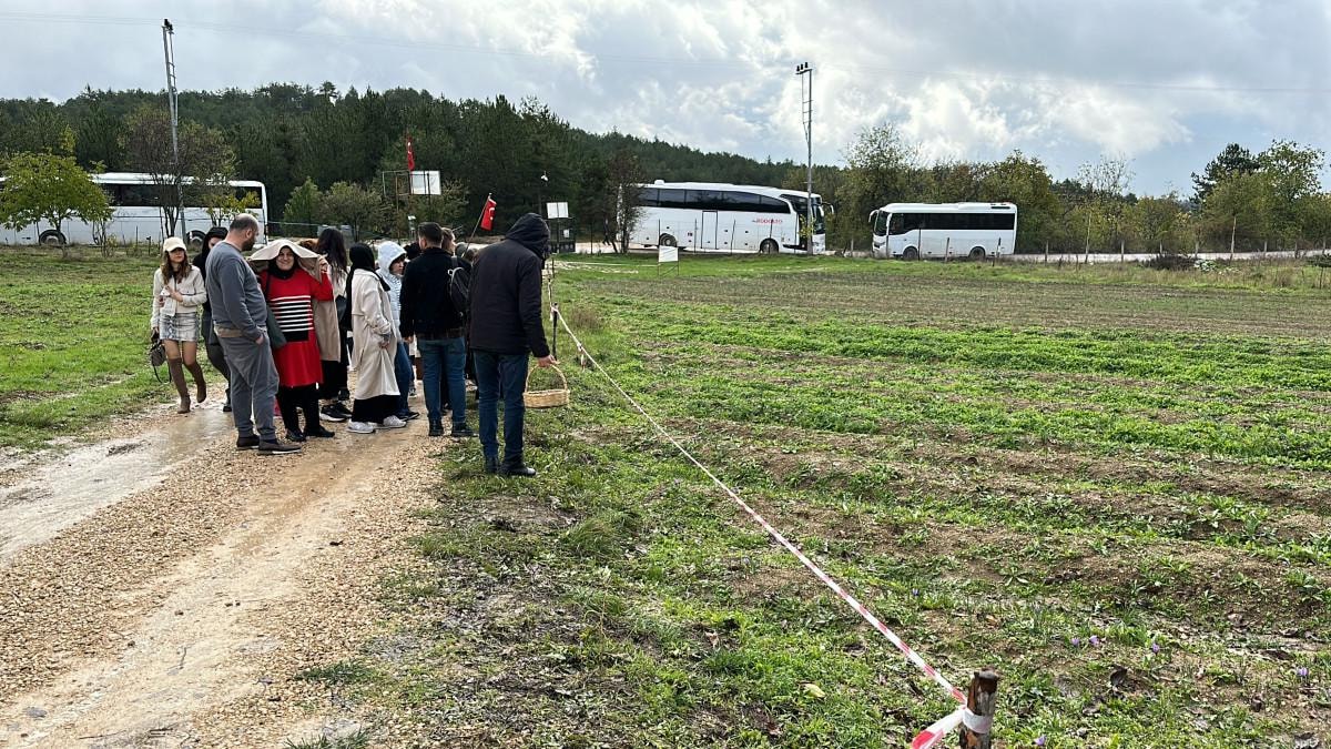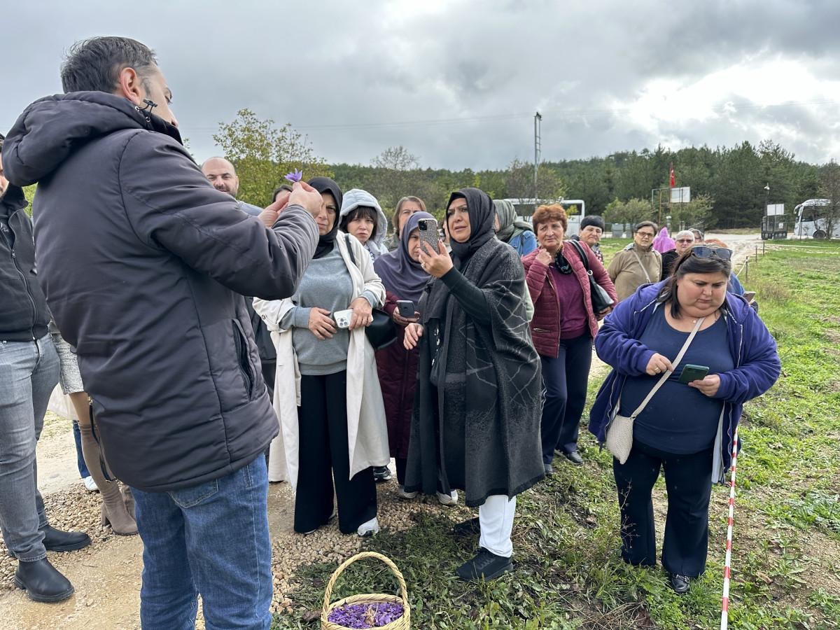İlçe turizminin destinasyonu haline gelen safran tarlalarında yağışa rağmen hafta sonu yoğunluğu yaşanıyor.